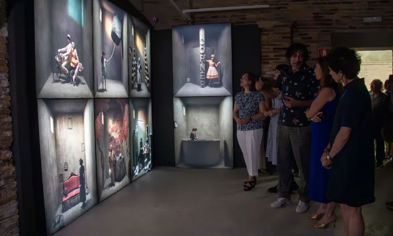 En 365º, Recuenco no solo captura instantes, sino que recrea universos donde el pasado y el presente se entrelazan: reinterpretaciones de cuadros clásicos, alusión a sucesos históricos y la presencia de lo cotidiano elevado a lo dramático.