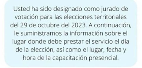 En Colombia se llevarán a cabo las elecciones regionales a la alcaldía, estas se realizan cada 4 años según dicta el gobierno. Para el año 2023, esta jornada de votaciones se desarrollará el día 29 de octubre en las 6 regiones del país, donde se elegirán un total de 32 gobernantes y más de 1.100 alcaldes en todas las ciudades y departamentos de Colombia. Durante las elecciones del 29 de octubre muchos ciudadanos son elegidos como jurados de votación, esto es de carácter obligatorio y la persona elegida debe asistir a inducciones para que el proceso de conteo de votos sea transparente durante esta jornada.
