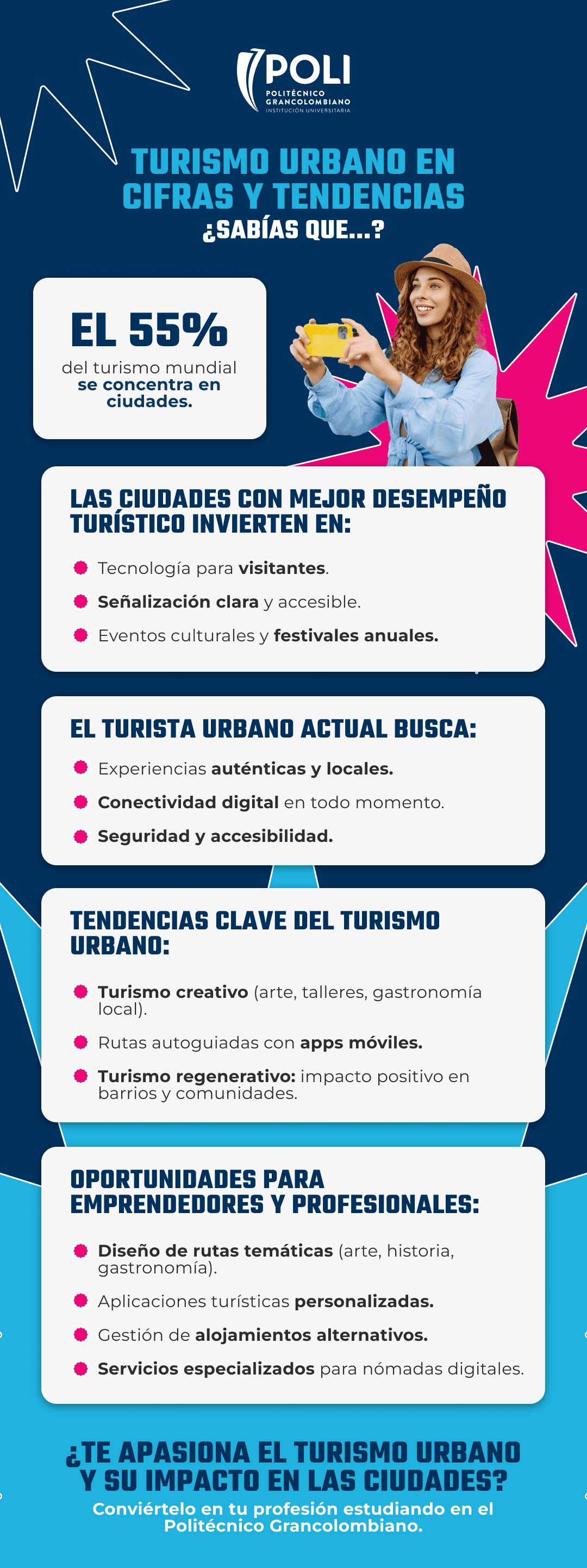 El crecimiento del turismo urbano requiere de profesionales capacitados que entiendan las dinámicas del entorno urbano, el comportamiento del turista moderno y las herramientas tecnológicas que pueden aplicarse en este contexto. Por eso, estudiar programas enfocados en turismo, hospitalidad y guianza se convierte en una apuesta estratégica.