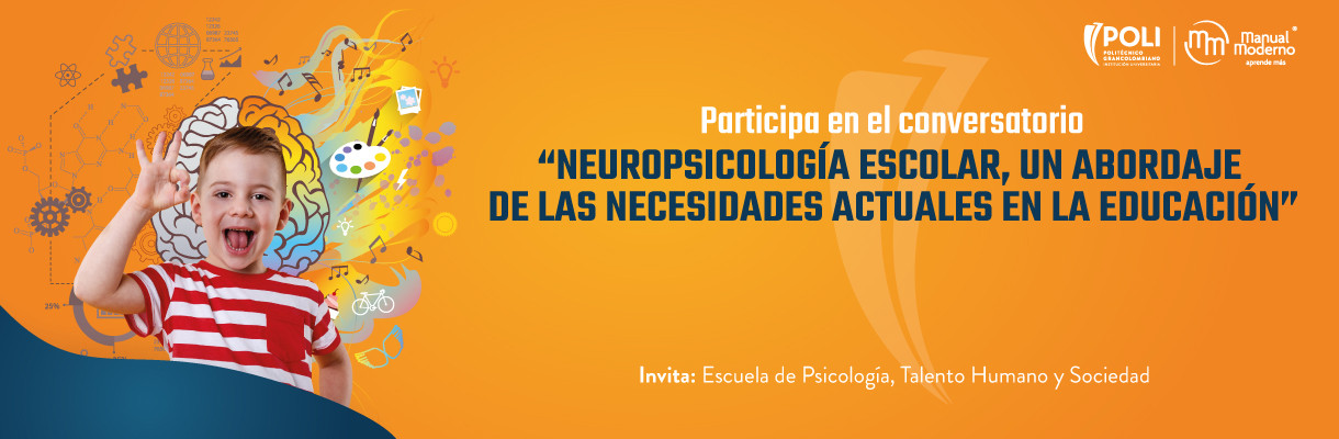 Agregar a mi calendario2022-08-08 09:41:002026-01-18 22:03:37Conversatorio “Neuropsicología escolar, un abordaje de las necesidades actuales en la educación” En marco del Lanzamiento del libro ‘Neuropsicología Escolar’ que realizará la Escuela de Psicología, Talento Humano y Sociedad, se invita a los estudiantes de pregrado y posgrado de esta escuela a participar en el conversatorio “Neuropsicología escolar, un abordaje de las necesidades actuales en la educación” que se realizará el próximo 18 de agosto.Será un espacio donde se hablará sobre esta obra literaria desarrollada por 14 profesionales en neuropsicología, algunos de ellos estarán presentes para abordar y dar a conocer diversas temáticas del escrito.¿Cuándo y dónde?Fecha: Jueves 18 de Agosto.Hora: 6:40 p.mLugar: Auditorio Campus PrincipalINSCRÍBETE AQUÍ LocationPolitécnico Grancolombiano[email protected]America/Bogotapublic