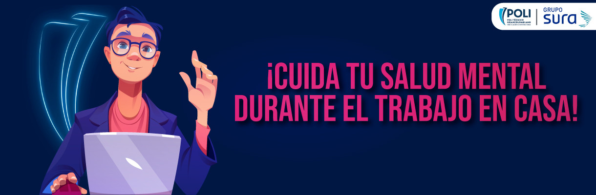 Agregar a mi calendario2021-11-24 08:00:002026-03-13 18:06:46¡Cuida tu salud mental durante el trabajo en casa! Con el objetivo de fomentar espacios dedicados al cuidado de la salud mental, la Gerencia de Talento Humano y Desarrollo Organizacional invita a los Colaboradores Poli a participar en un encuentro especial donde se abordarán varios aspectos importantes de este año lleno de retos, desafíos, experiencias nuevas, crecimiento personal, cambios del entorno, entre otros factores.Además, entendiendo que las dinámicas familiares cambiaron debido al confinamiento por el Covid-19, junto con la ARL SURA se promoverá la salud mental y el autocuidado durante el trabajo en casa.¿Cuándo y dónde?Fecha: 24 de noviembreHora: 8:00 a. m. - 9:00 a. m.Lugar/Plataforma: Microsoft Teams LocationPolitécnico Grancolombianopolitecnico@example.comAmerica/Bogotapublic