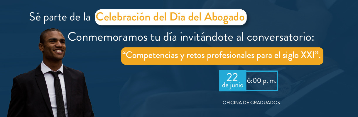 La Oficina de Graduados y el Área de Permanencia Institucional abren un espacio de capacitación para celebrar el Día del Abogado, en donde invita a estudiantes y graduados de la Escuela de Derecho del Poli a nivel nacional a participar del conversatorio “Competencias y retos profesionales para el siglo XXI”.