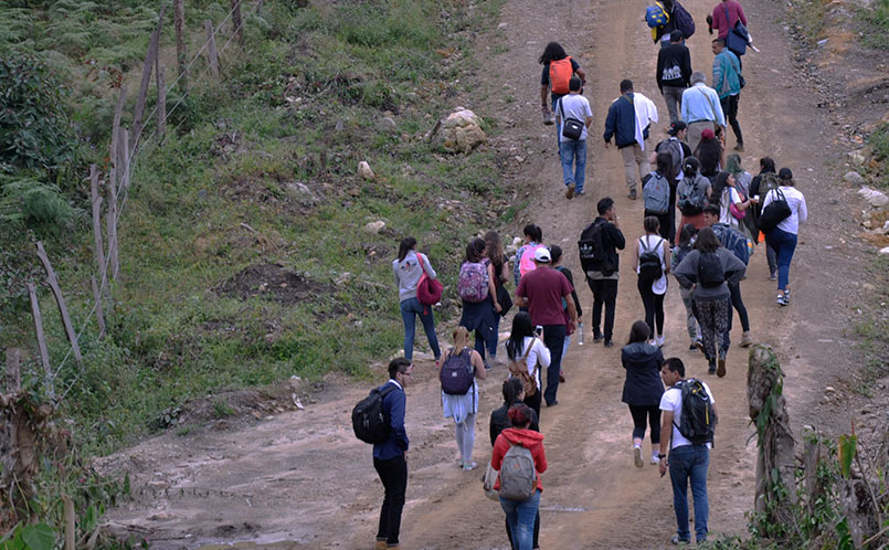 Los grancolombianos, entre estudiantes y docentes, que participaron de esta enriquecedora experiencia pudieron conocer e interactuar en el lugar donde se concentran más de 270 exguerrilleros a la espera del tránsito a la vida sin armas. En esta Zona Veredal que ha sido bautizada como “Antonio Nariño”, lugar donde hace más de medio siglo, se gestó una de las primeras insurrecciones campesinas que dieron origen al grupo guerrillero. Los excombatientes que se concentran allí, ingresaron a las filas de la guerrilla a través de redes y milicias rurales y urbanas con ideales de cambio por medio de las armas, sin embargo hoy en día pudimos reconocerlos como seres humanos con esperanzas de vida e imaginarios de paz.