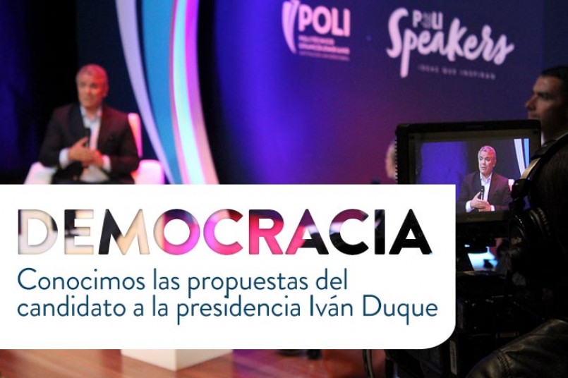 En el marco de Polispeakers, Iván Duque, candidato presidencial, estuvo en el Auditorio Jaime Michelsen en un conversatorio moderado por Noemí Sanín. En el encuentro los grancolombianos tuvieron la oportunidad de conocer las propuestas del aspirante a la presidencia.