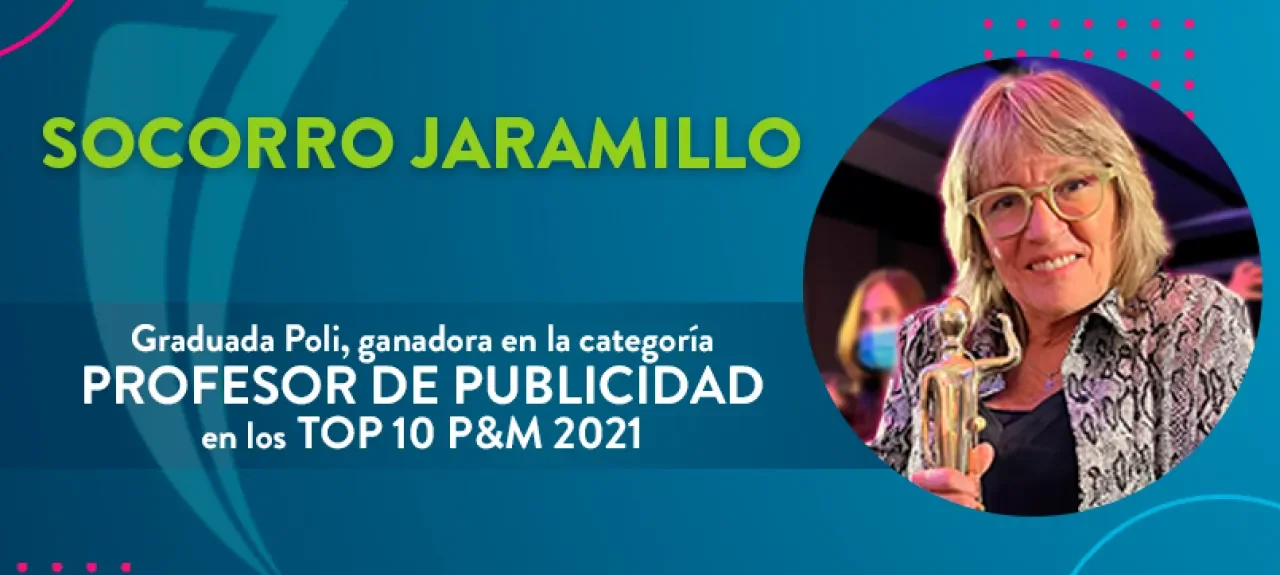 Este año, la Graduada Poli del programa de Mercadeo y Publicidad y la Maestría en Gerencia Estratégica de Mercadeo, Socorro Jaramillo, fue una de las ganadoras de este reconocimiento en la categoría ‘Profesor de Publicidad 2021’.