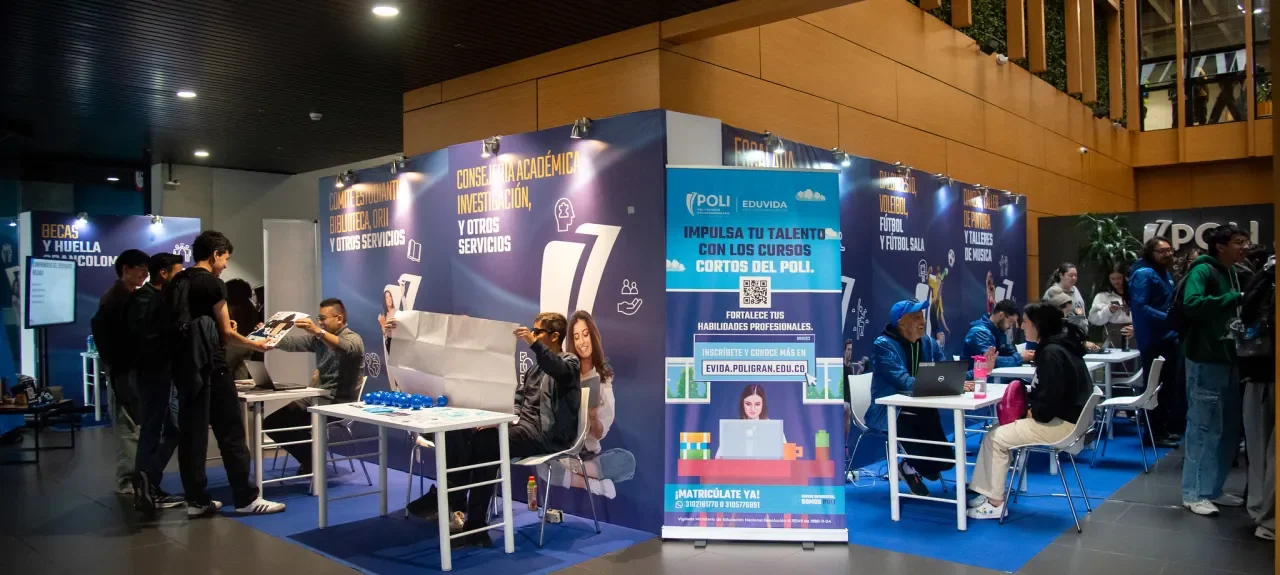 Durante la feria también se brindó información para que obtengas orientación académica, asesorías extra clases, guía en el uso de nuestras plataformas y el acceso a "Manos Levantadas", una herramienta clave para recibir acompañamiento académico cuando lo necesites. Además, Huella Grancolombiana estuvo presente para informar sobre las becas disponibles y cómo postularse a ellas, porque en el Poli creemos en apoyar el talento y esfuerzo de nuestra comunidad.